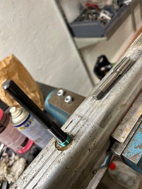Full fart med att fixa skadade gängor i bandstegen - har cirka 20 bandsteg kvar att jobba med, grundfelet är troligen att förre ägaren inte sett över och efterdragit efter varje säsong vilket straffar sig. Menmen...många bult...