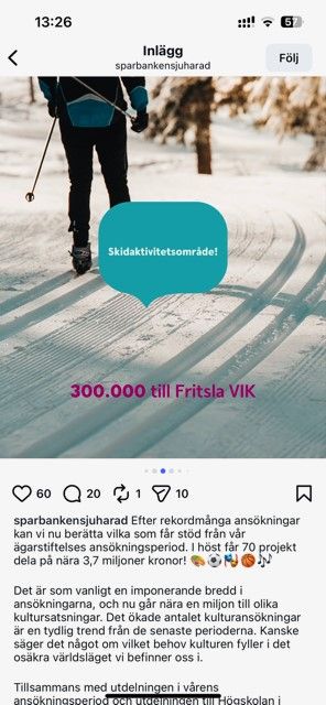 Igår fick Fritsla VIK beviljat en betydande summa från Svenska Skidförbundet för att möjliggöra aktiviteter för målgruppen 65+ Vi lyfter på hatten och tackar och det värmer att få förtroendet. Vi riktar återigen tack till