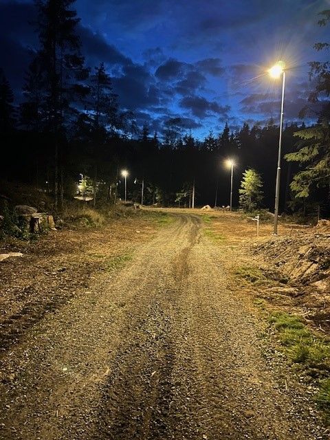 Ny är elljuset igång igen efter att ha bytt ett gäng stolpar och ersatt luftledning med nergrävd kabel. Nya fräscha energieffektiva LED-armaturer med behagligt ljus för att vara snälla mot djurlivet.