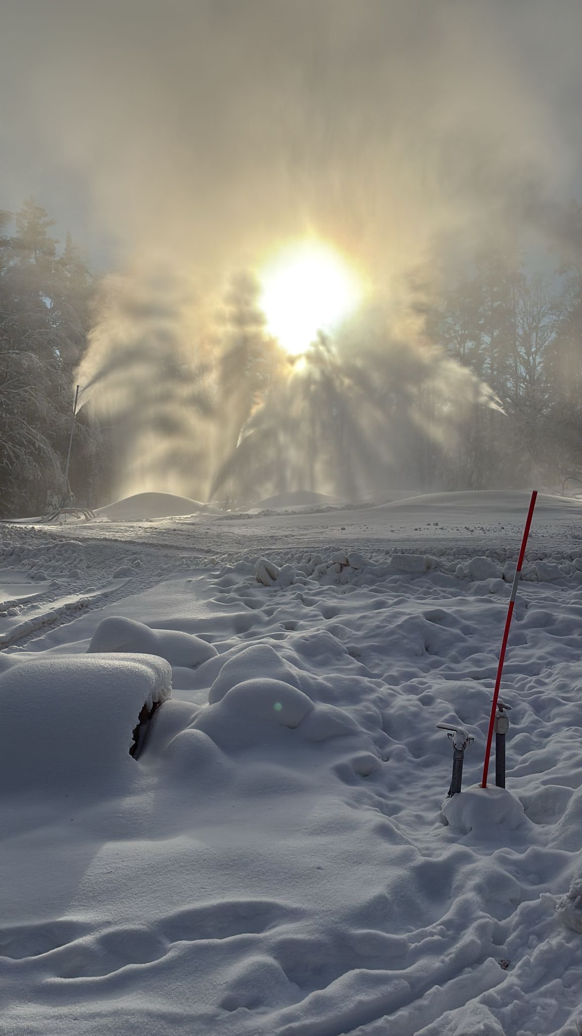 En mycket stort dag idag. Formell provkörning av hela systemet på maximal kapacitet. Fungerade helt problemfritt. Så i och med detta har vi ett fungerande snösystem - bara minusgrader som fattas.