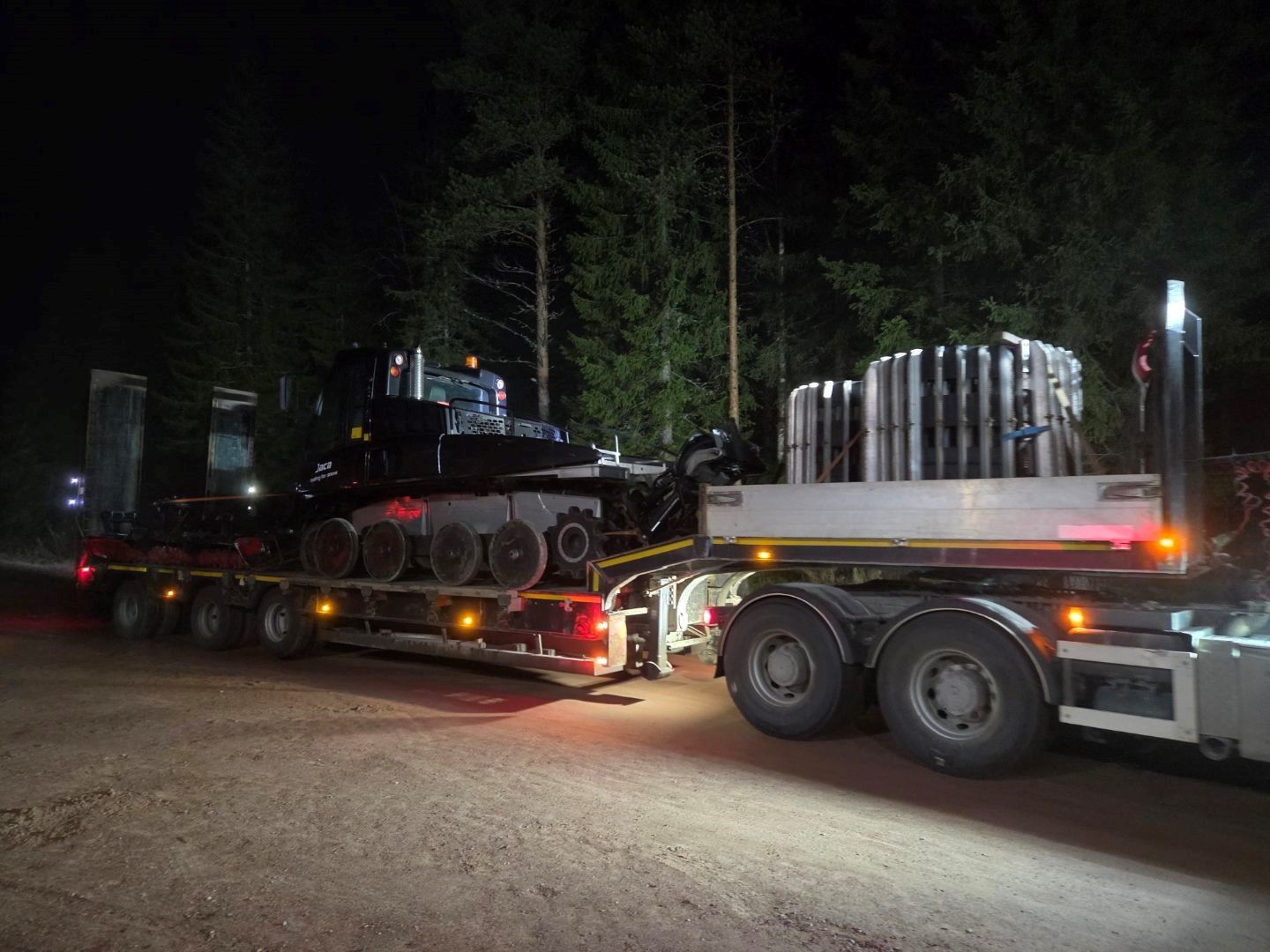 En stor dag. Långtradare med hela rörsystemet för vatten och tryckluft levererades. Var på håret kan kom runt Hans staket. :)