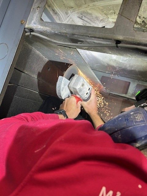Lite fix med kompressorn, upptäckte ett läckage på kylet så vi byter till ett nytt. Aningens större så lite FABRICATION krävdes. Men nu är det på plats.