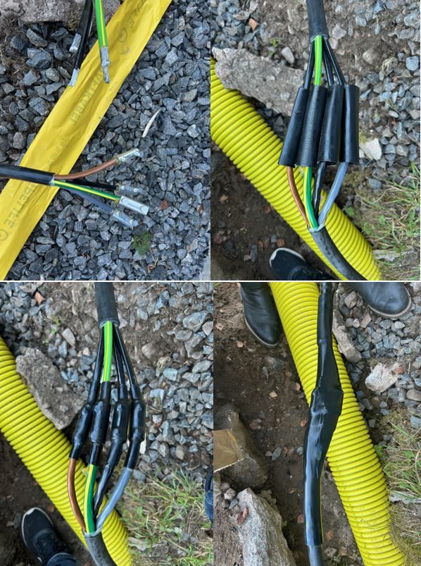 Jobbas hårt på att få igång det nya elljuset nu när kvällarna blir mörkare. Hör skarvar vi matningskabeln som förser hela elljuset med ström.